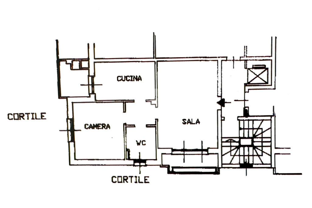 Bilocale di 70 mq al terzo piano con ascensore in uno stabile signorile con giardino condominiale e portineria.