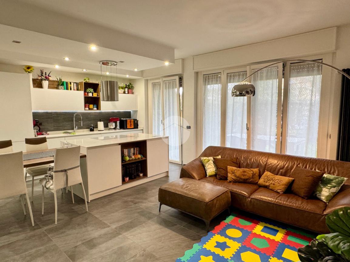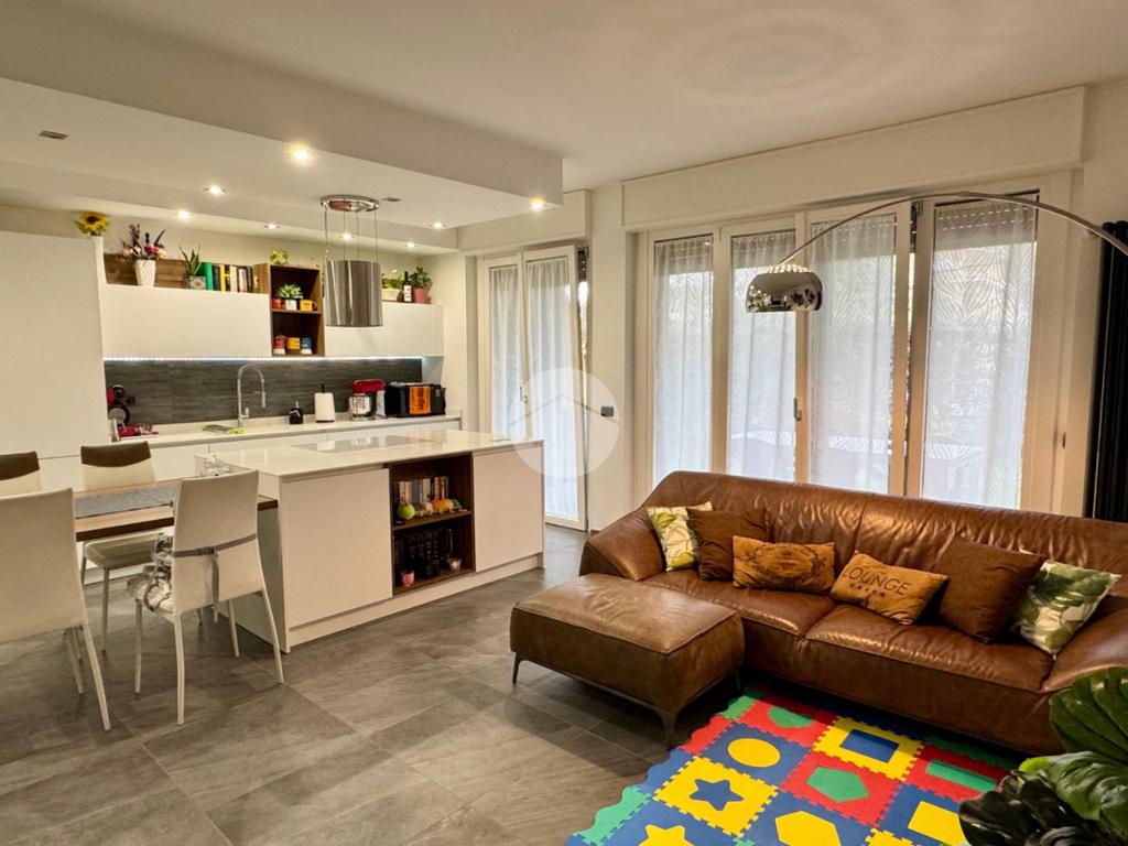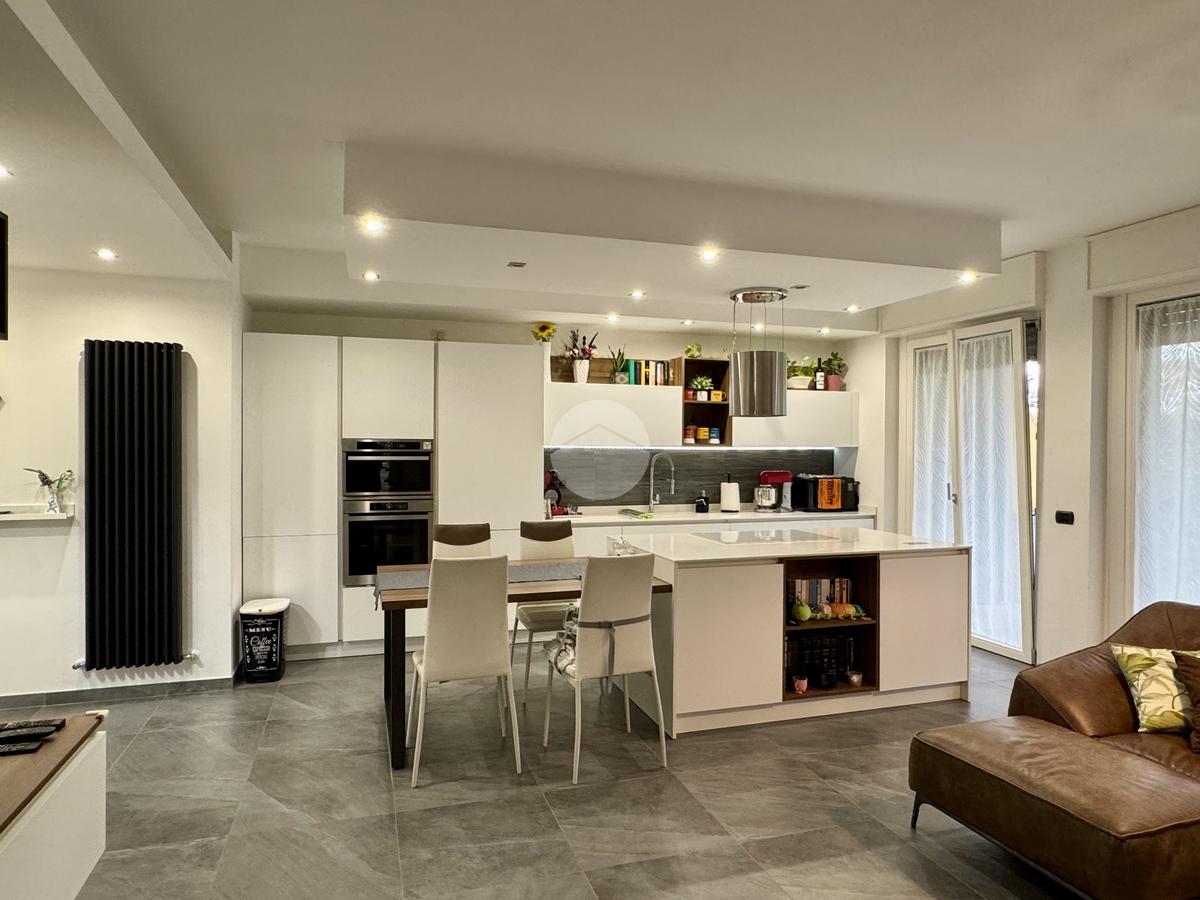 L’ingresso si apre su ampio soggiorno con cucina abitabile dotata di isola con piano ad induzione, il salone è provvisto di portafinestra con affaccio su un incantevole giardino privato, conclude la zona giorno la presenza di un comodo ripostiglio all'ingresso che aggiunge praticità e organizzazione agli spazi.