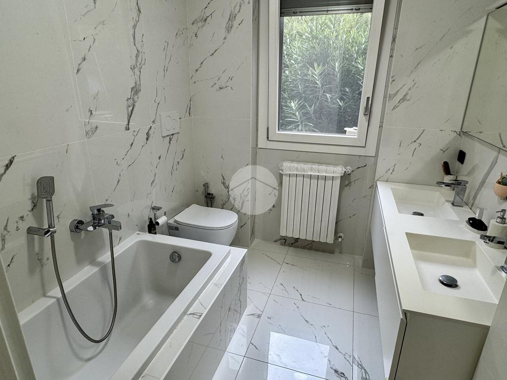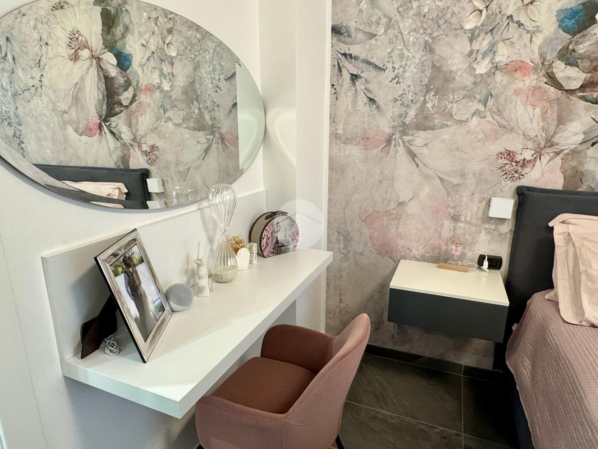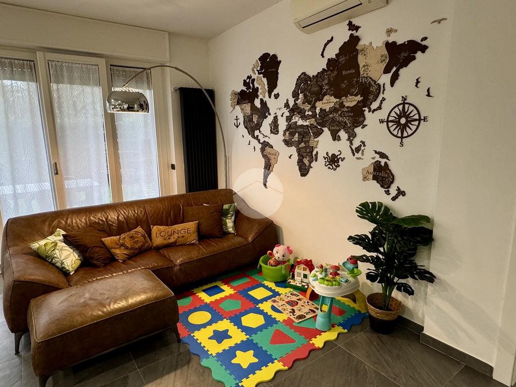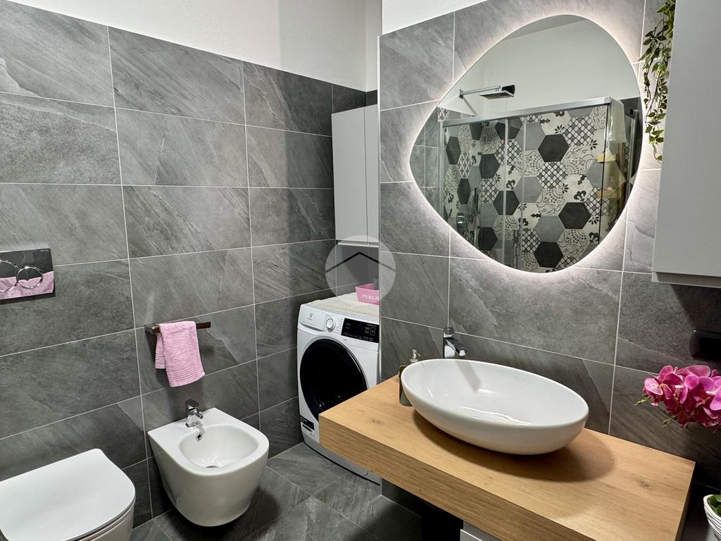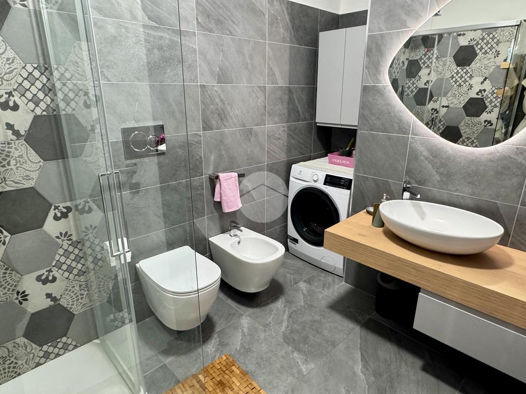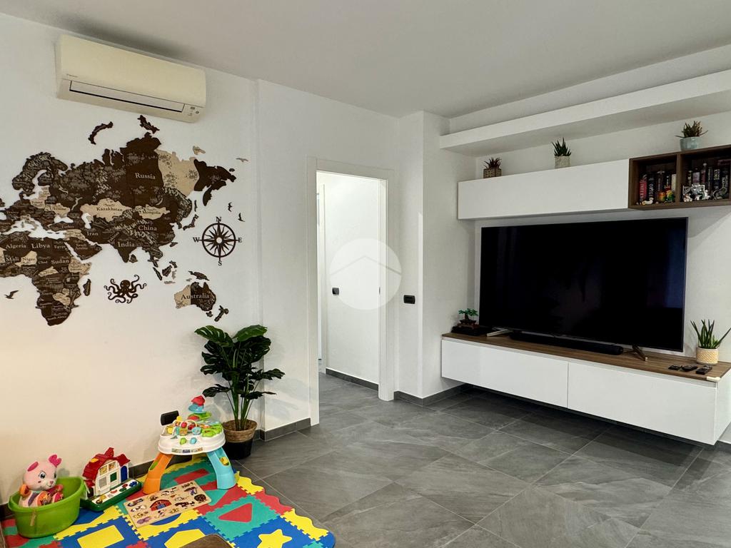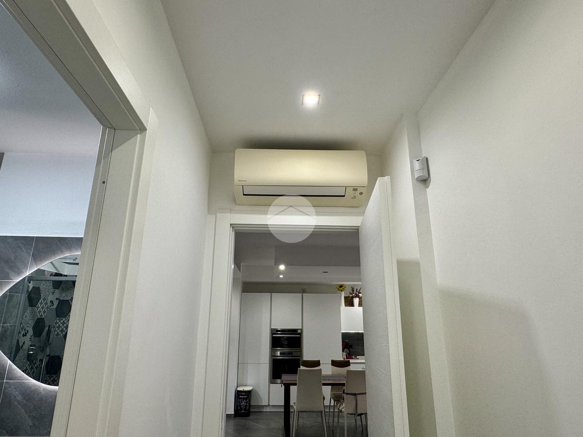 L'appartamento è stato recentemente ristrutturato nel 2021 con materiali di alta qualità come la pavimentazione in gres effetto pietra, conferendogli un aspetto moderno e accogliente.