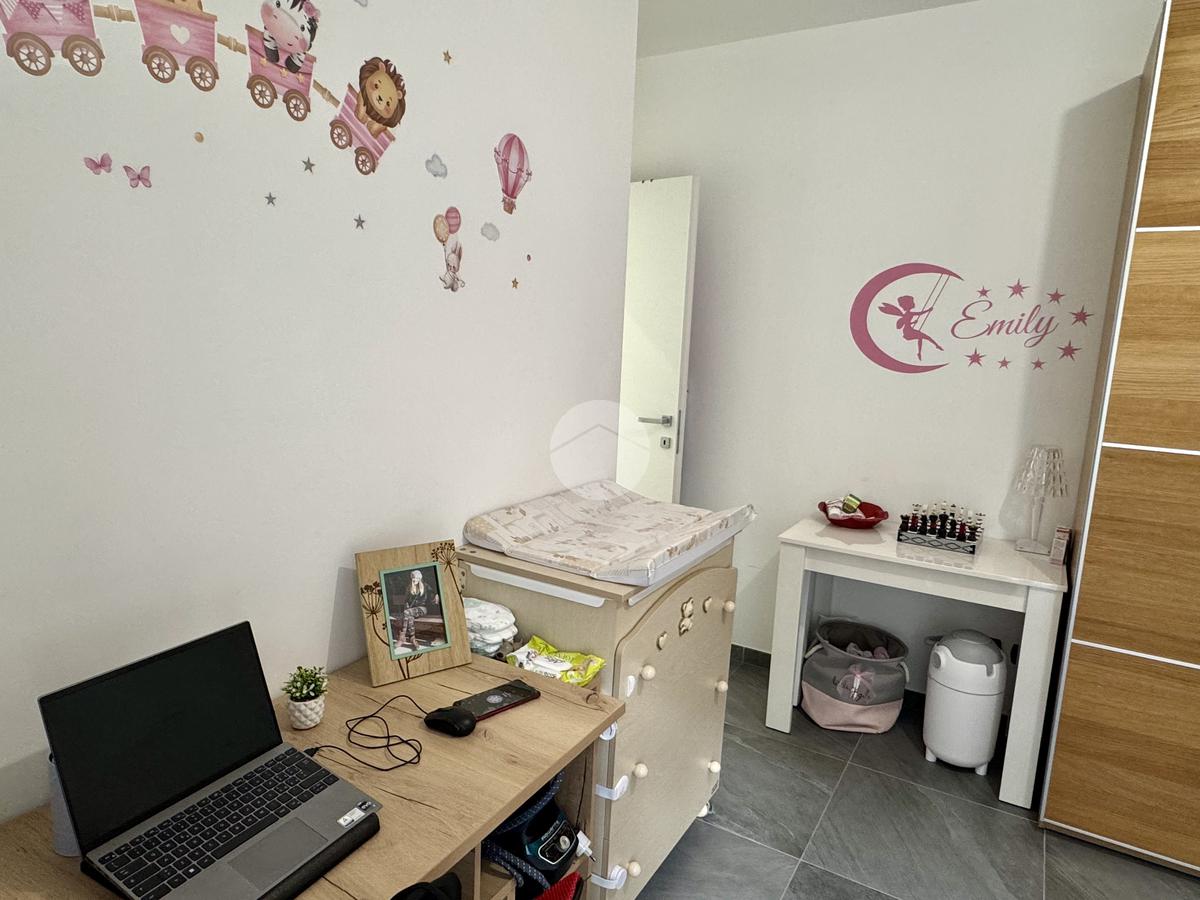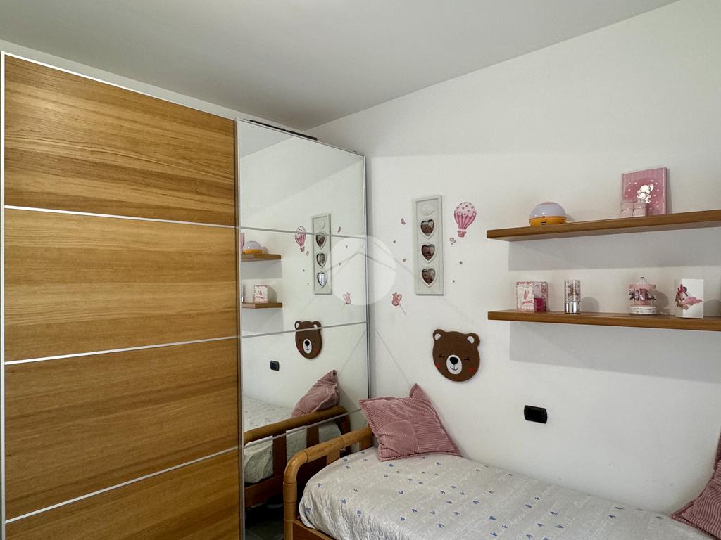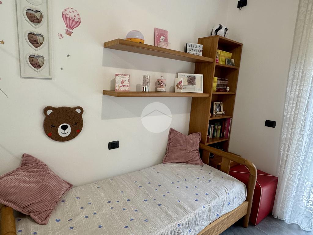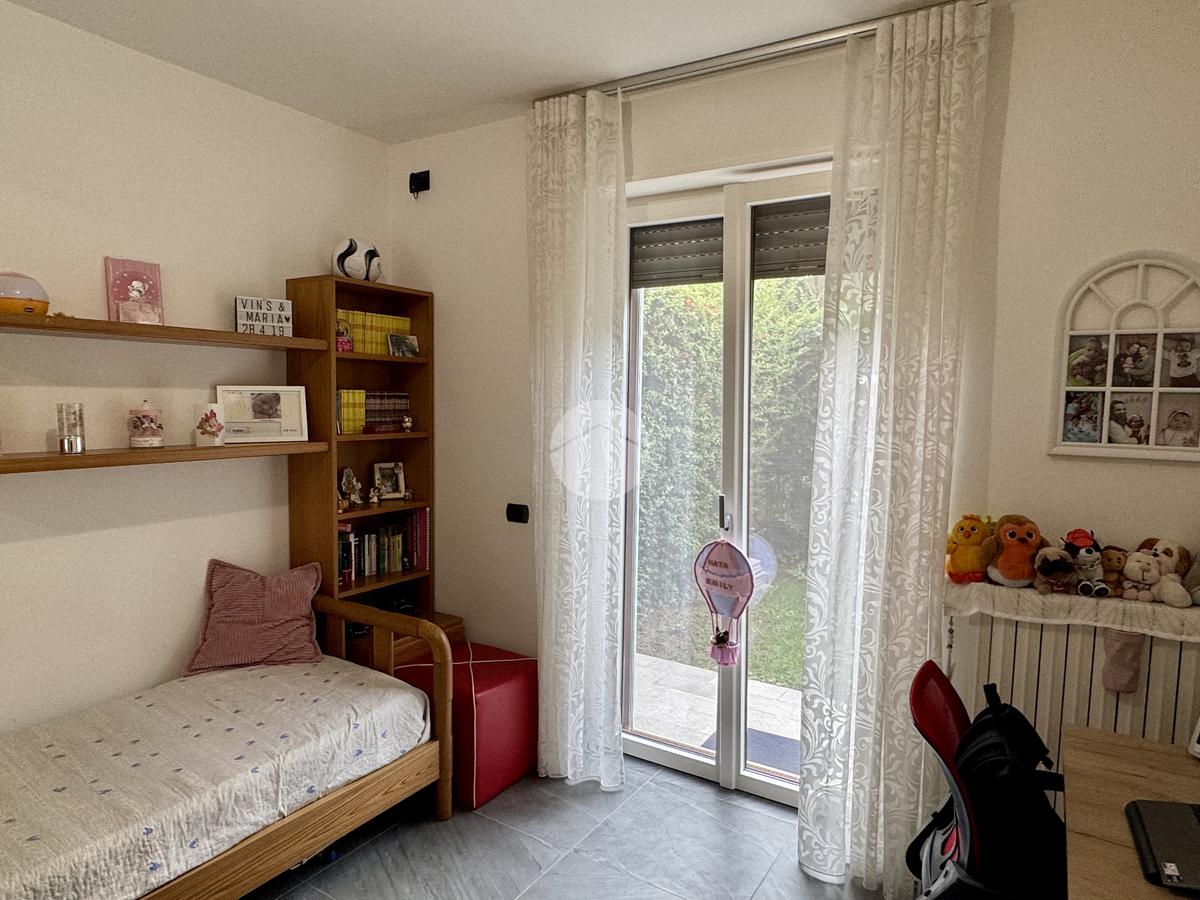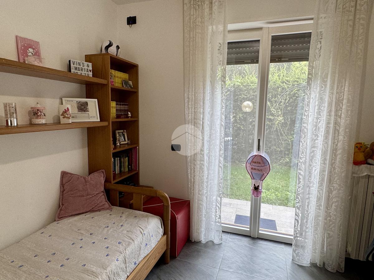 Proseguendo troviamo due camere da letto ampie e luminose, la camera matrimoniale anch’essa con porta finestra sul giardino privato e la cameretta, altrettanto accogliente, con accesso ad un secondo giardino privato, offrendo ulteriore spazio all'aperto per il relax o il gioco.