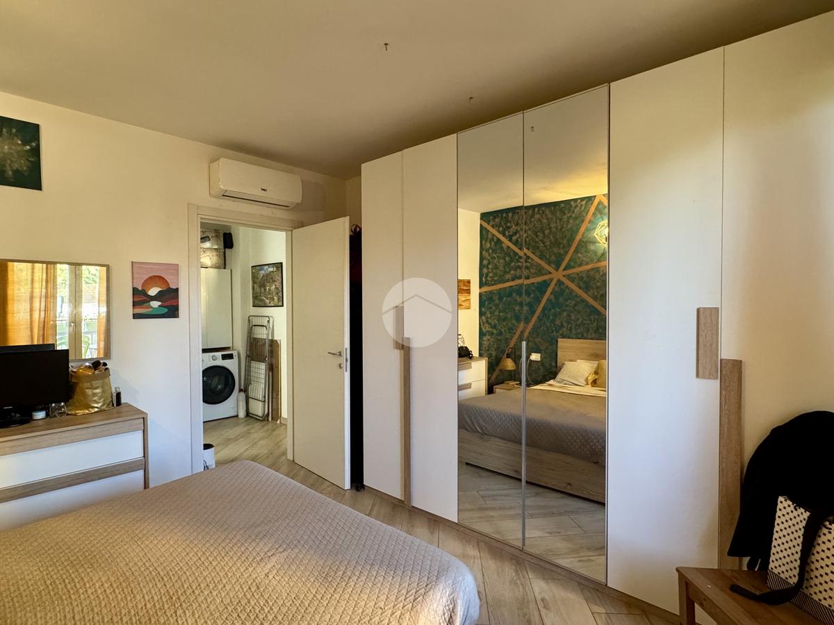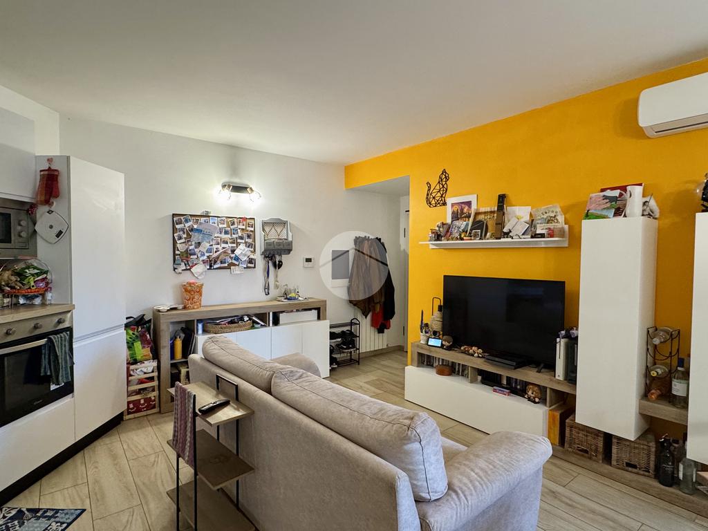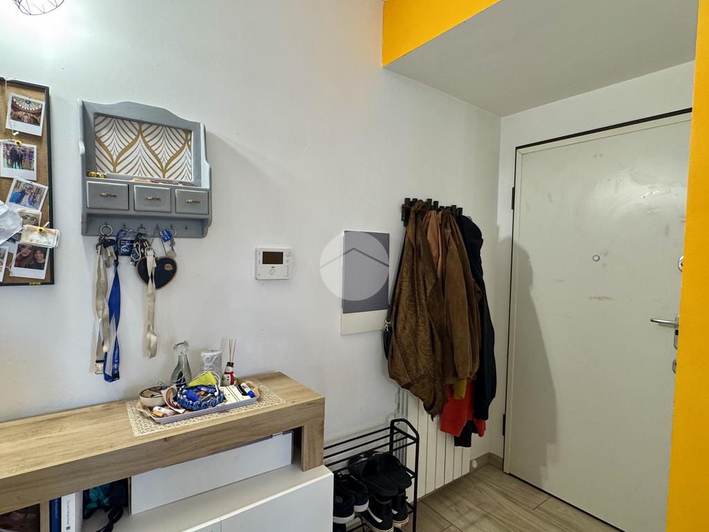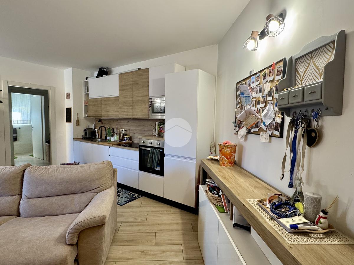 L’appartamento si apre su un luminoso soggiorno con cucina a vista, perfettamente organizzato, con accesso diretto a un piacevole terrazzino. Un ampio disimpegno conduce alla zona notte, dove troviamo un bagno finestrato con finiture moderne e una spaziosa camera da letto matrimoniale, anch’essa dotata di accesso al terrazzino. Il disimpegno offre inoltre la possibilità di realizzare una comoda zona lavanderia.