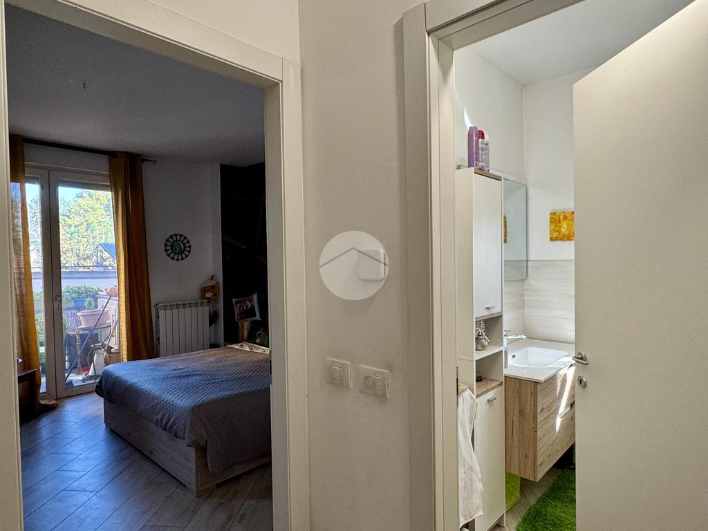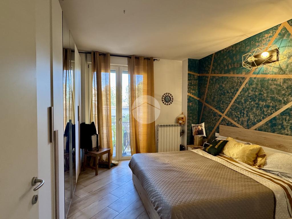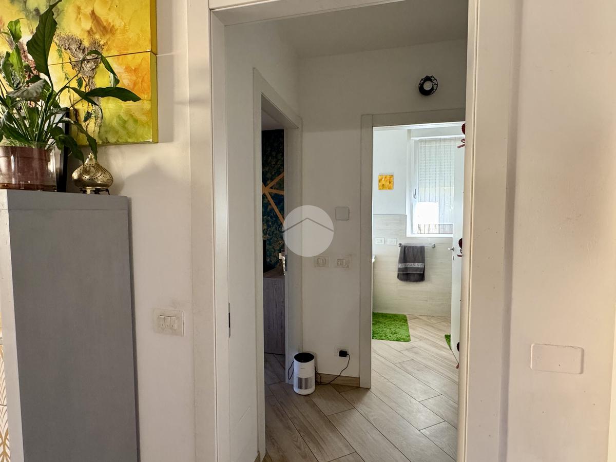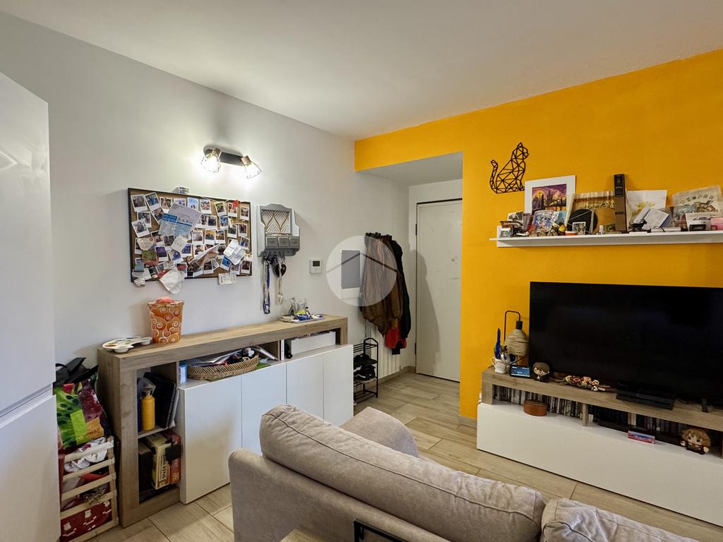 L’appartamento si apre su un luminoso soggiorno con cucina a vista, perfettamente organizzato, con accesso diretto a un piacevole terrazzino. Un ampio disimpegno conduce alla zona notte, dove troviamo un bagno finestrato con finiture moderne e una spaziosa camera da letto matrimoniale, anch’essa dotata di accesso al terrazzino. Il disimpegno offre inoltre la possibilità di realizzare una comoda zona lavanderia.